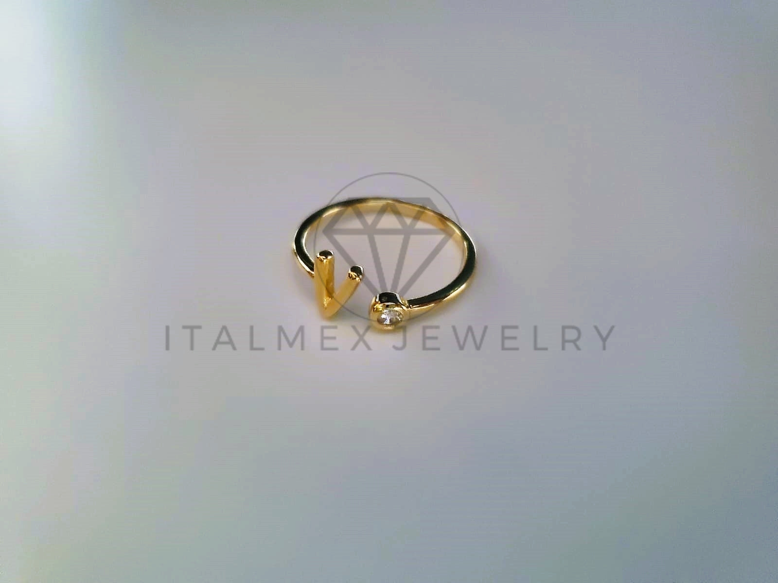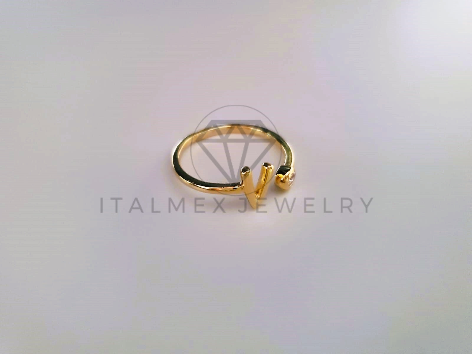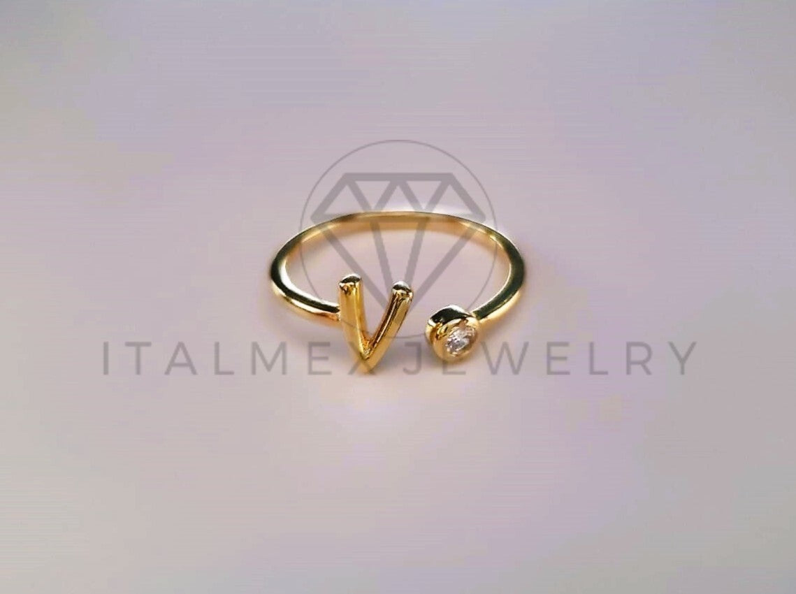 Anillo Dama de Lujo -103769 - Diseño Inicial "V" CZ Clara Oro Laminado 18K