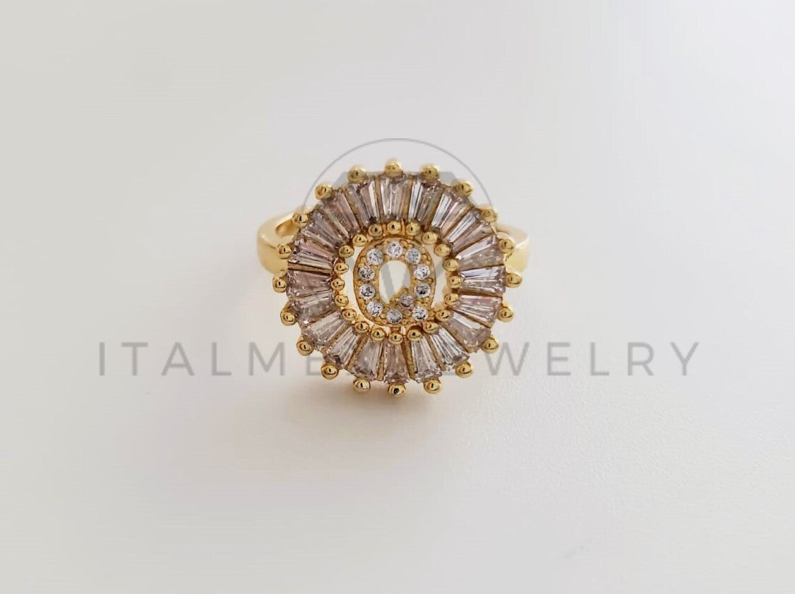 Anillo de Lujo - 102564 - Diseño Inicial "Q" con CZ Clara Oro Laminado 18K
