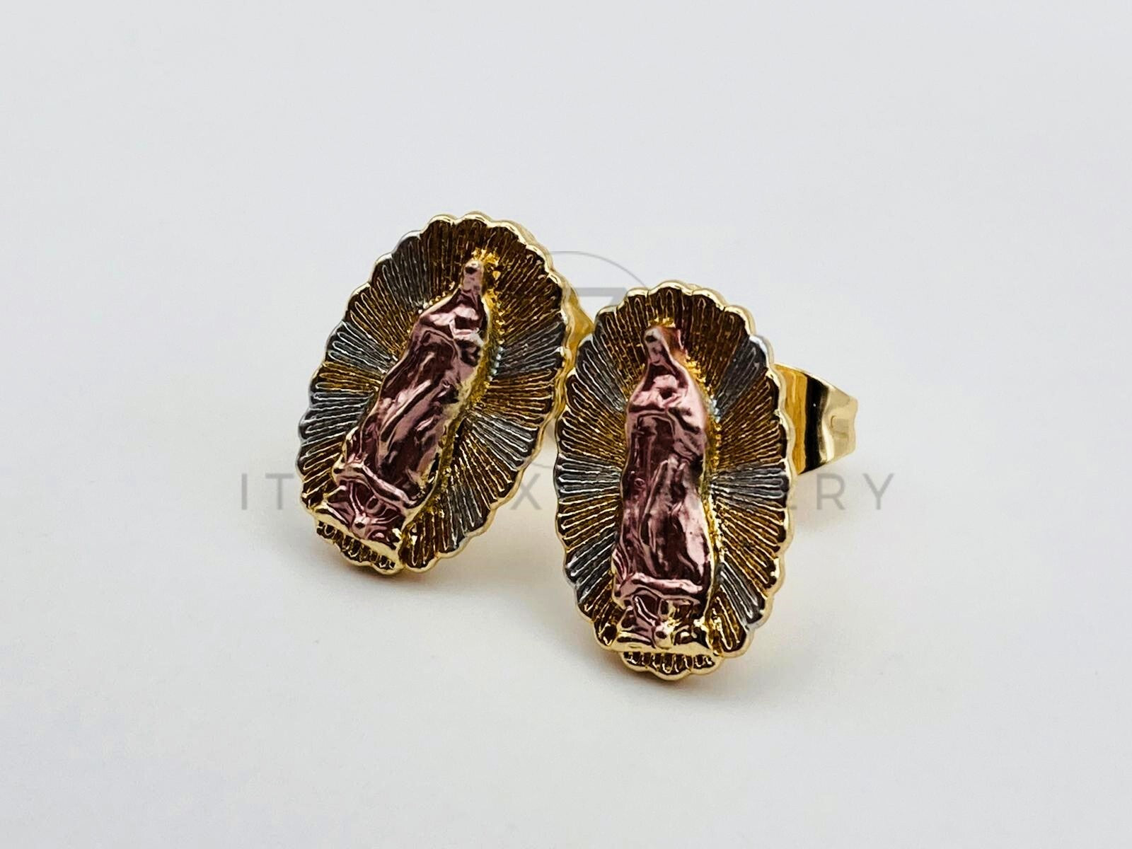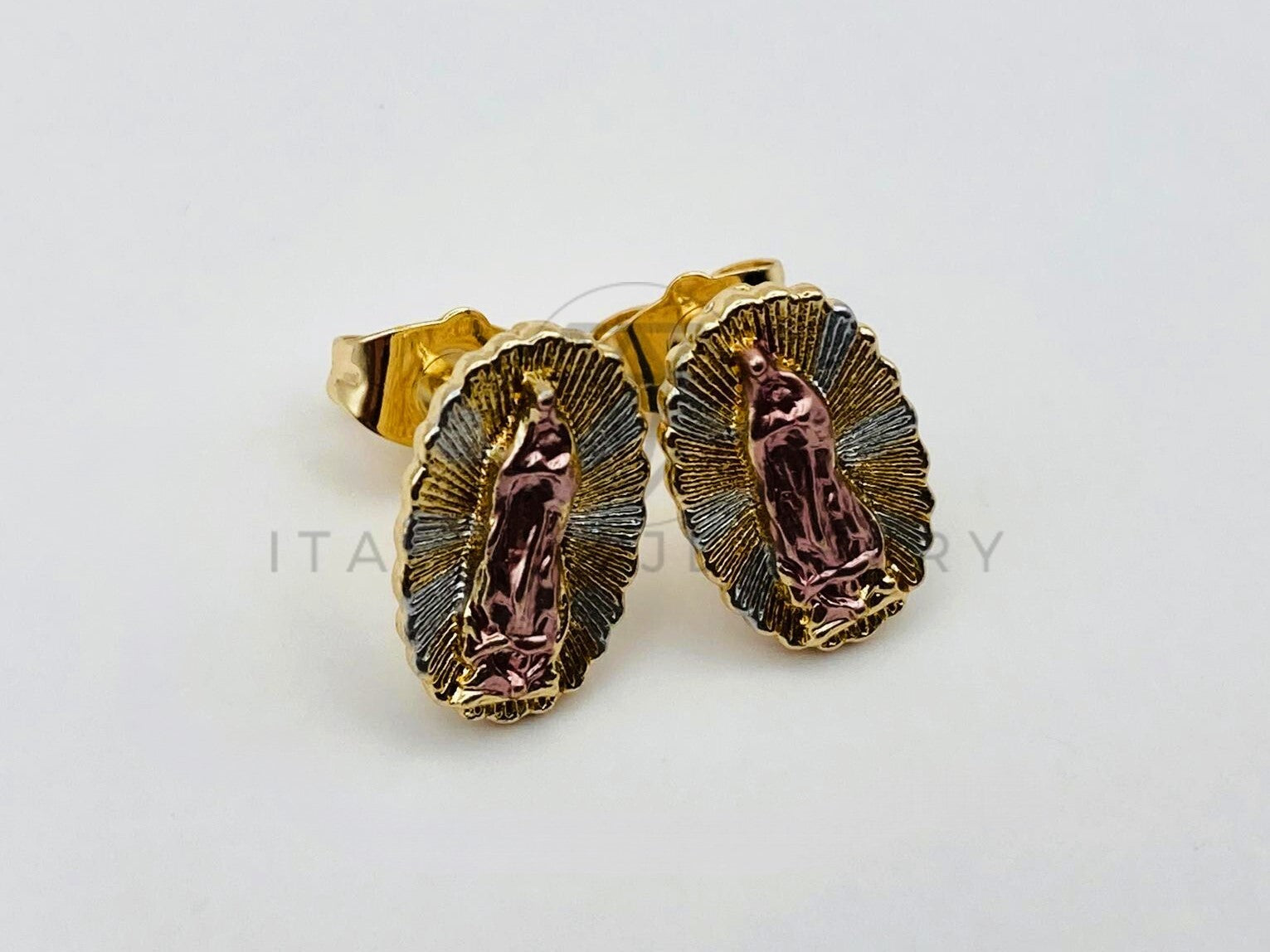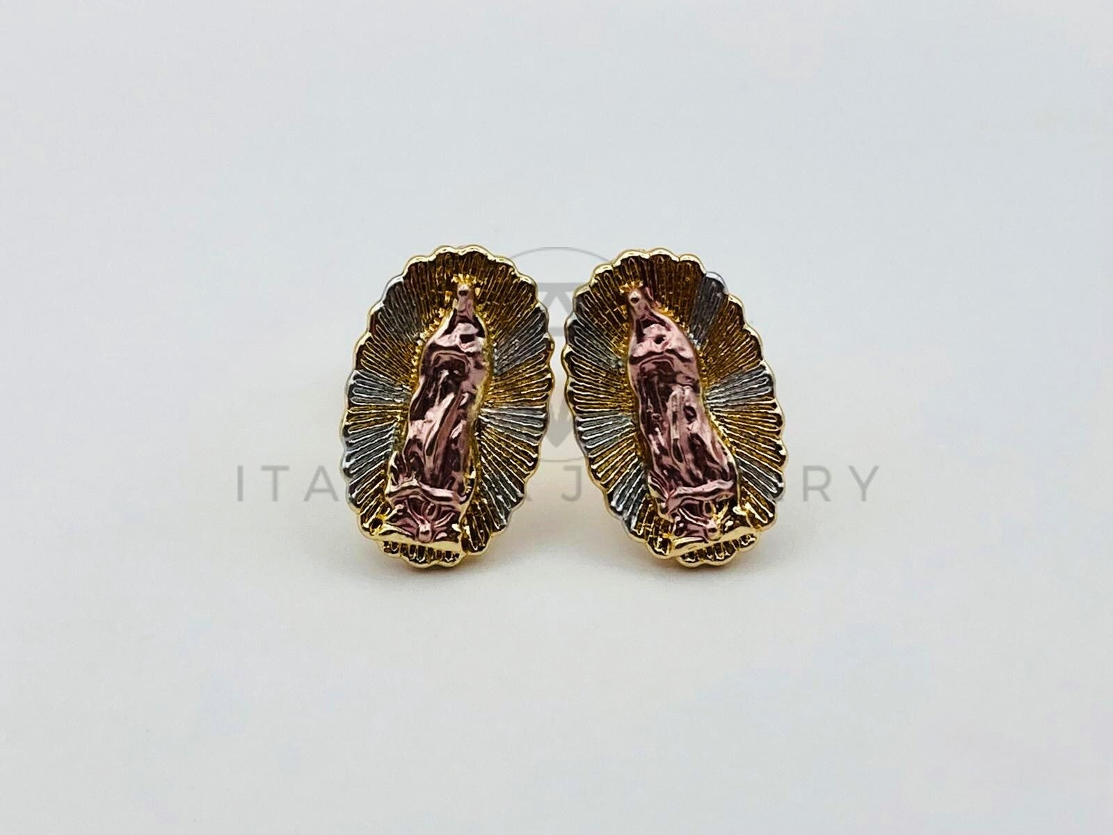 Arete de Lujo - 105994 - Diseño de Virgen de Guadalupe 3 Oros - Oro Laminado 18K