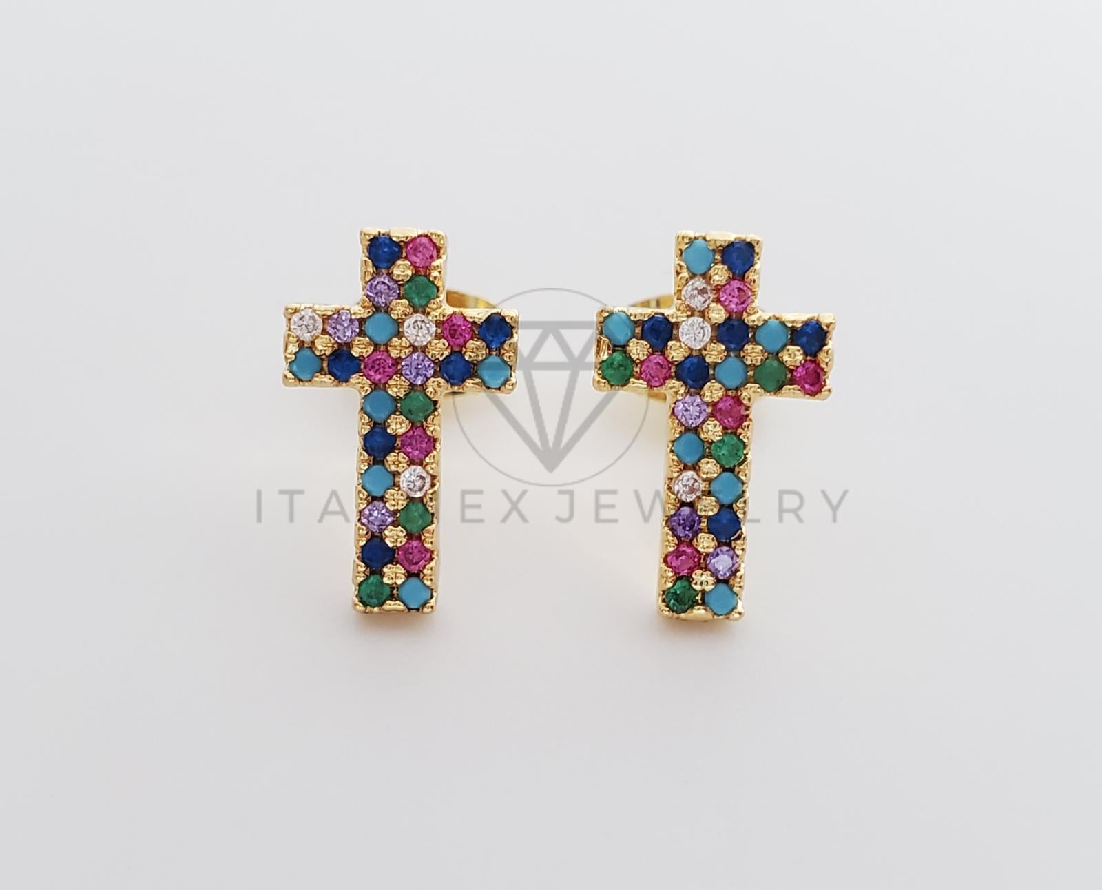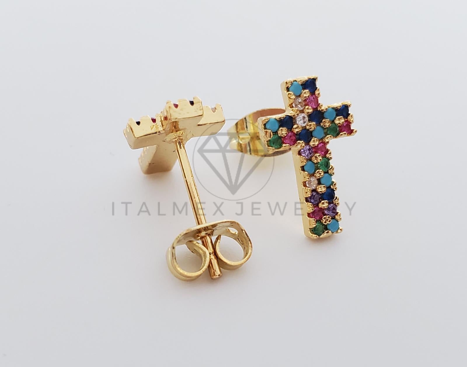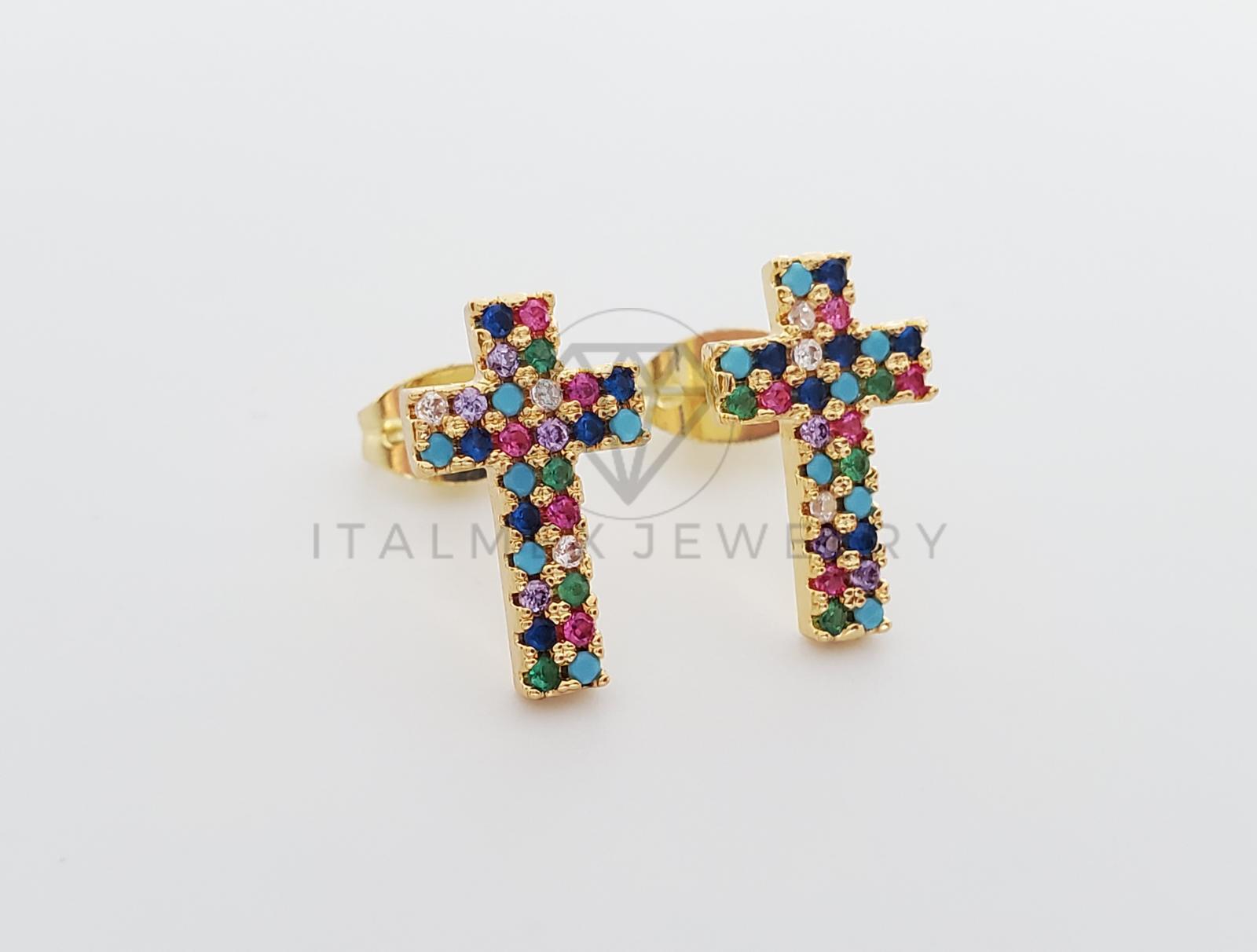 Broquel de Lujo - 100224 - Diseño de Cruz CZ Color Oro Laminado 18K