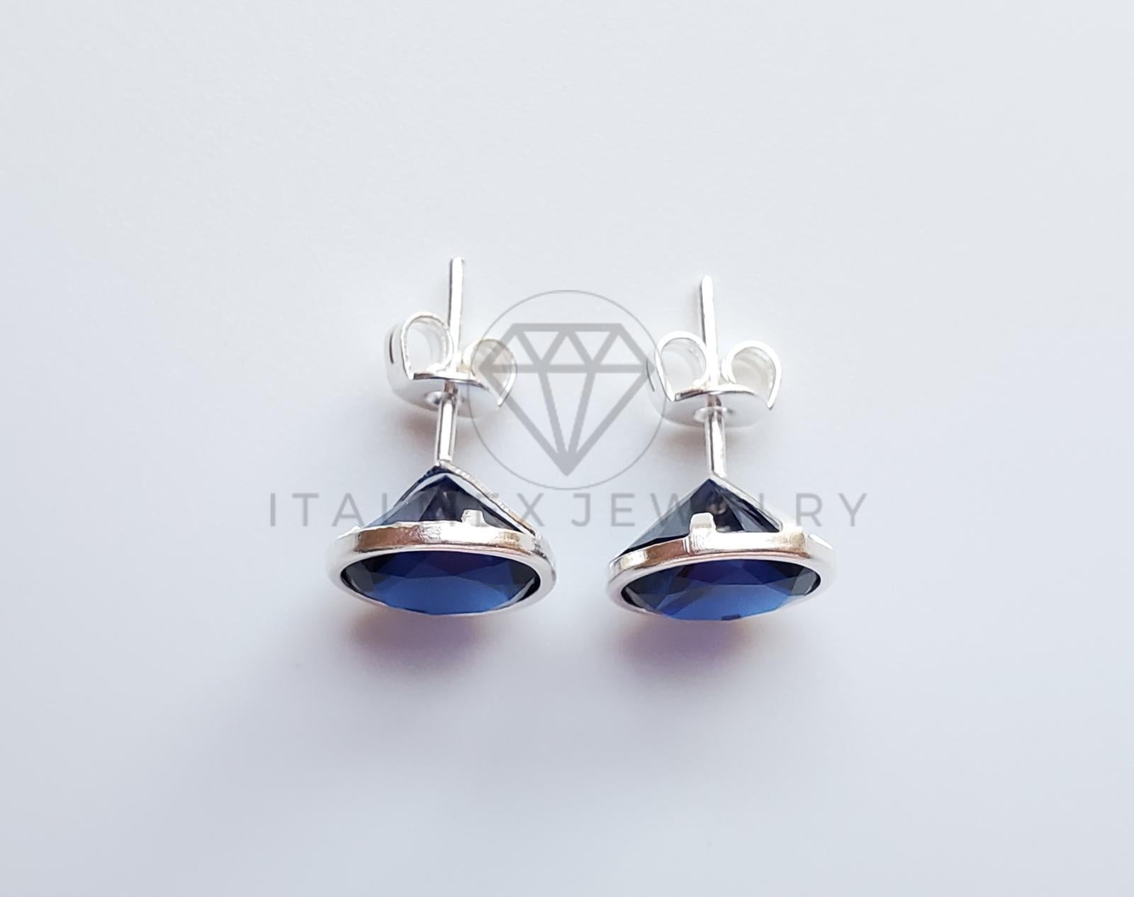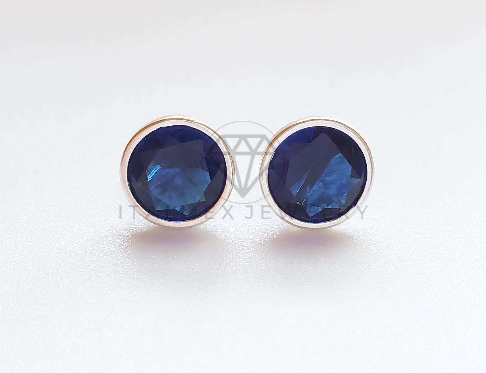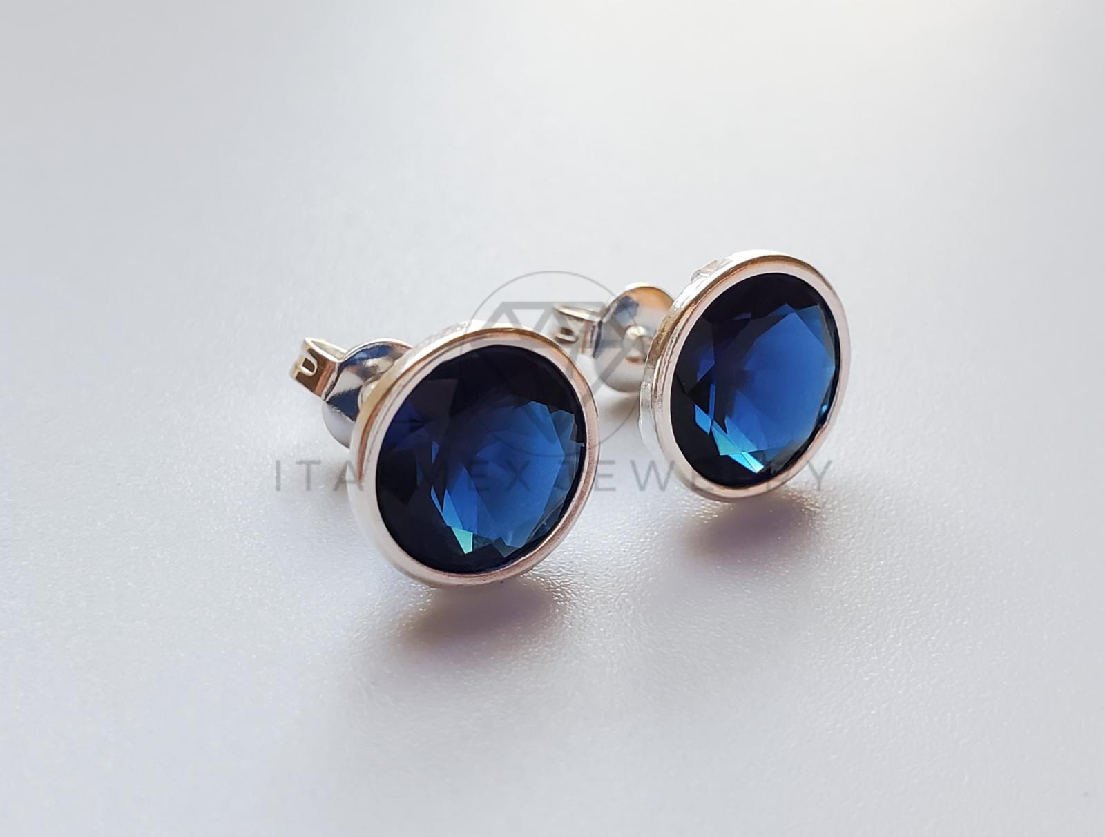 Broquel de Lujo - 101687 - Bisel Redondo CZ Azul 9mm Plata .925