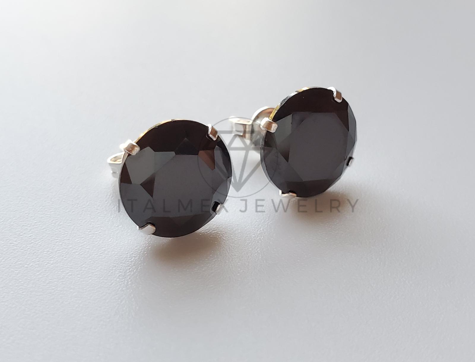 Broquel de Lujo - 101705 - Recto 10mm CZ Negra Plata .925