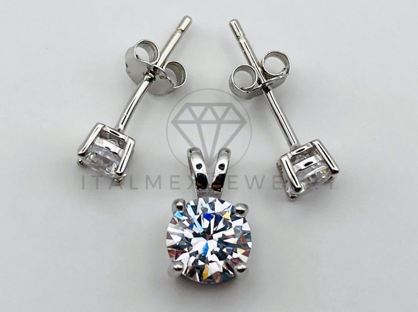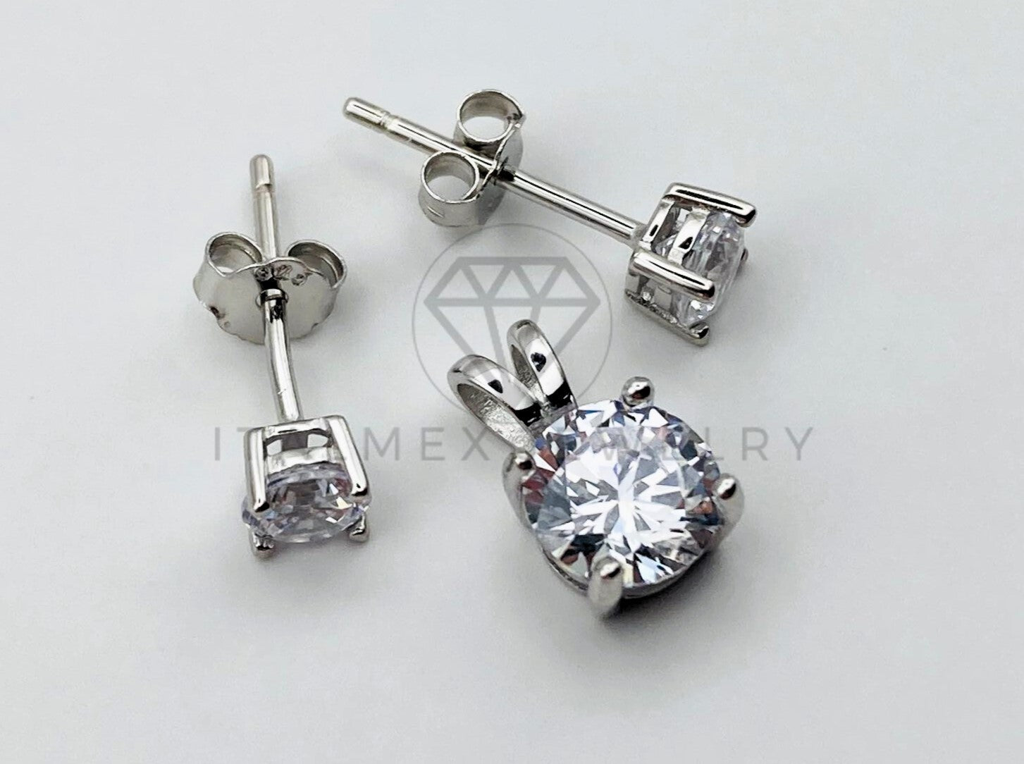 Juego Collar de Lujo - 105476 - Estilo Redondo Clara Diamante Plata .925