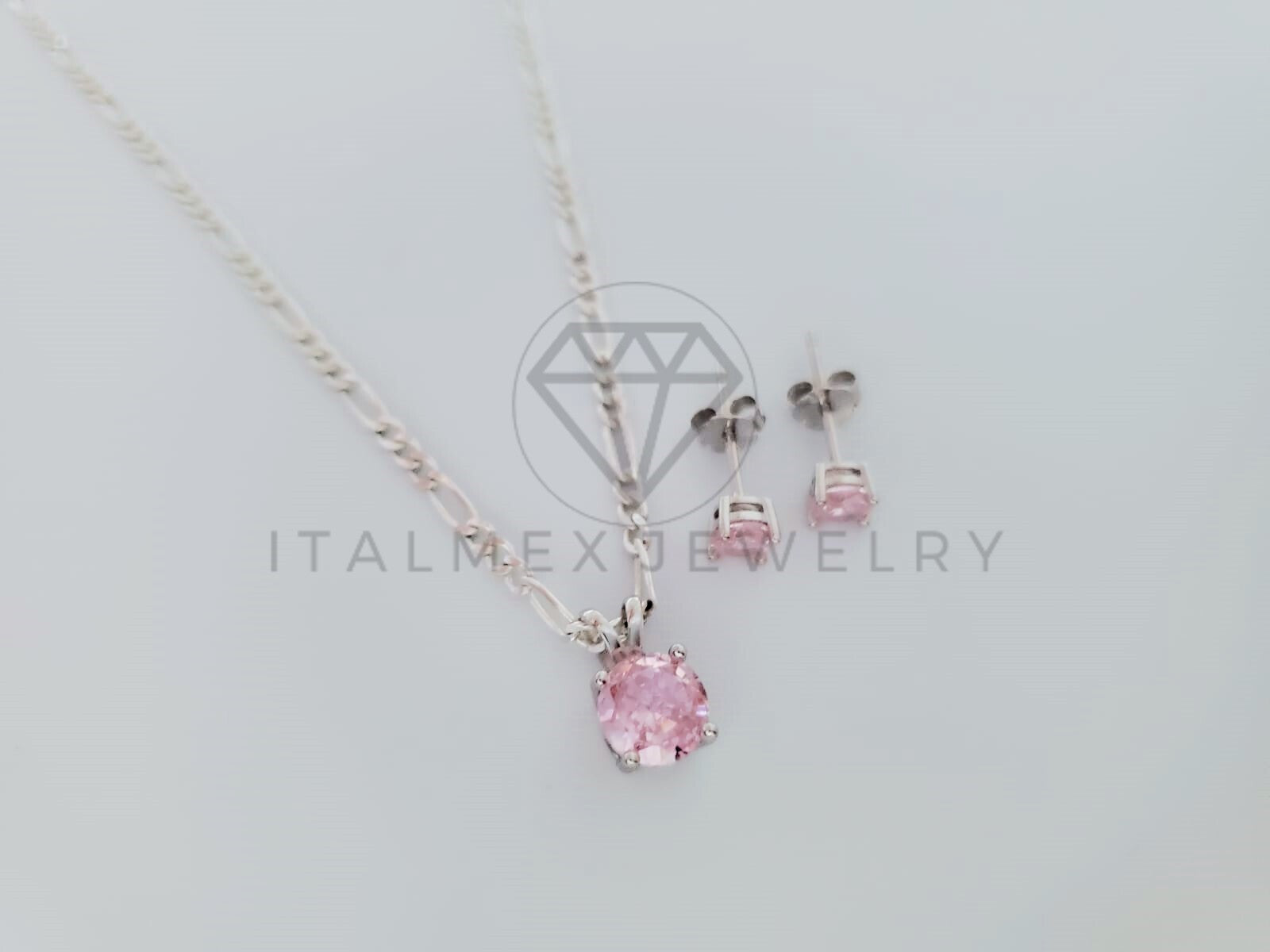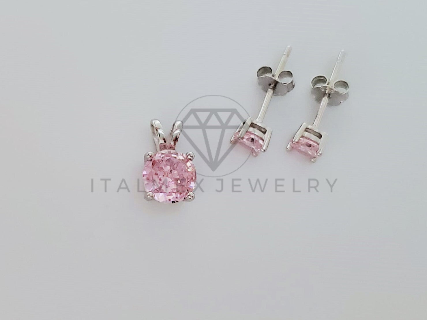 Juego de Lujo - 105241 - Estilo Redondo Circonia Rosa Plata .925