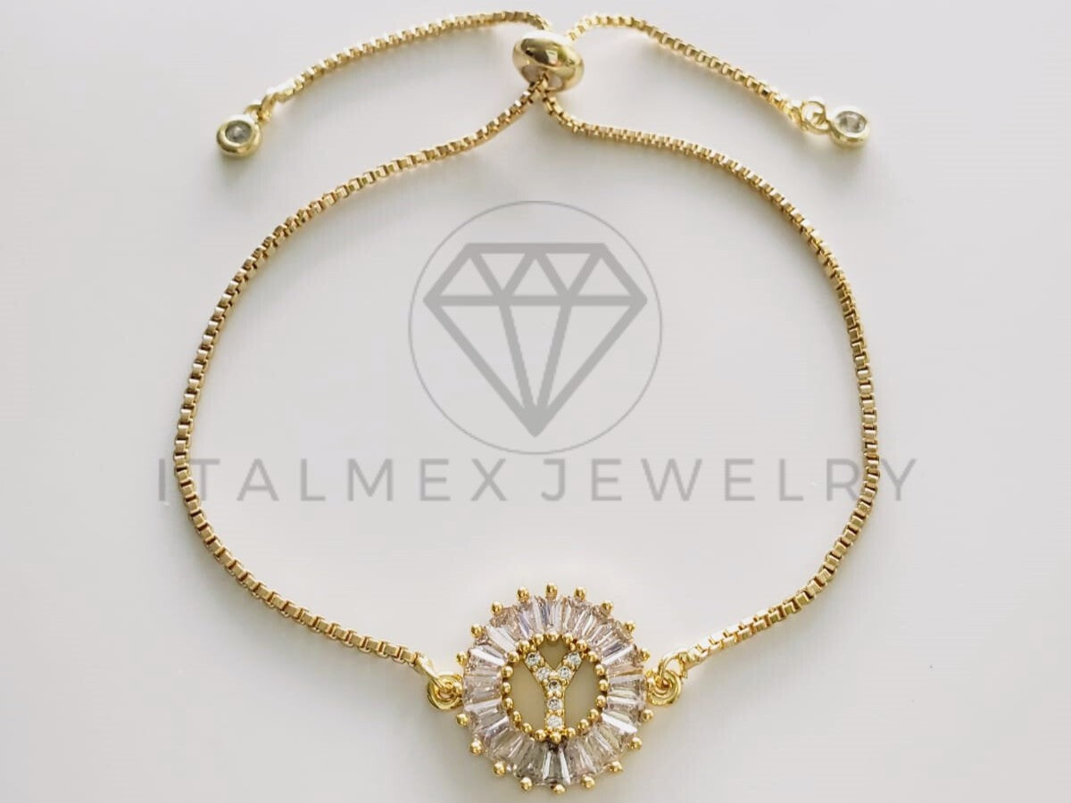 Pulsera Ajustable - 102559 - Diseño de Inicial "Y" CZ Clara Oro Laminado 18K
