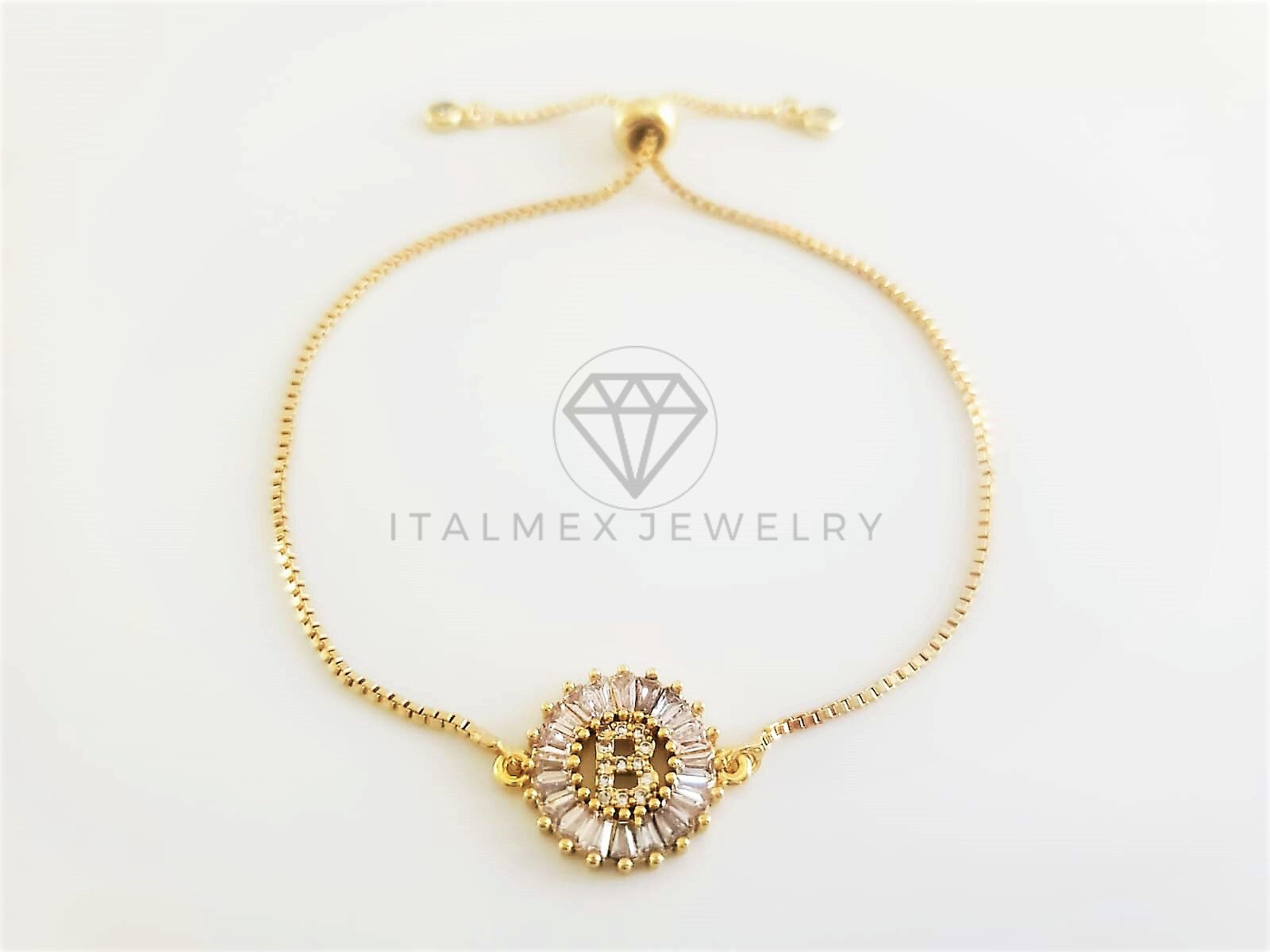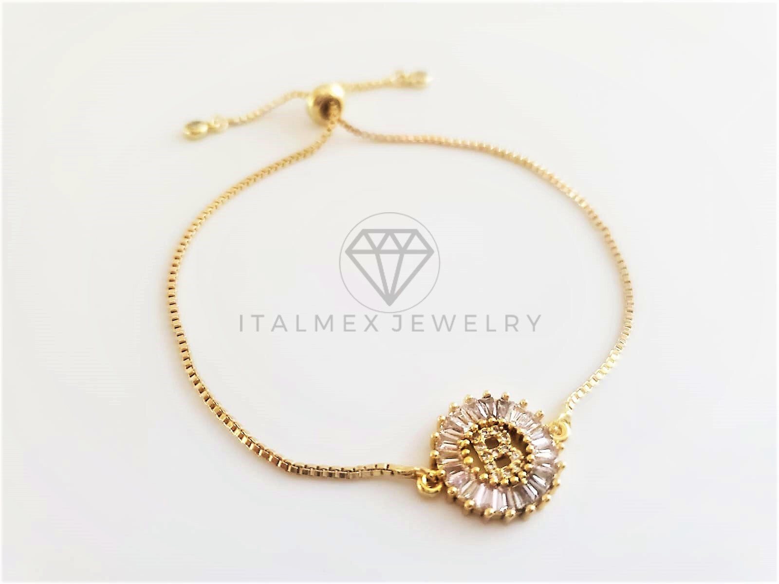 Pulsera Ajustable - 102628 - Diseño de Inicial "B" CZ Clara Oro Laminado 18K